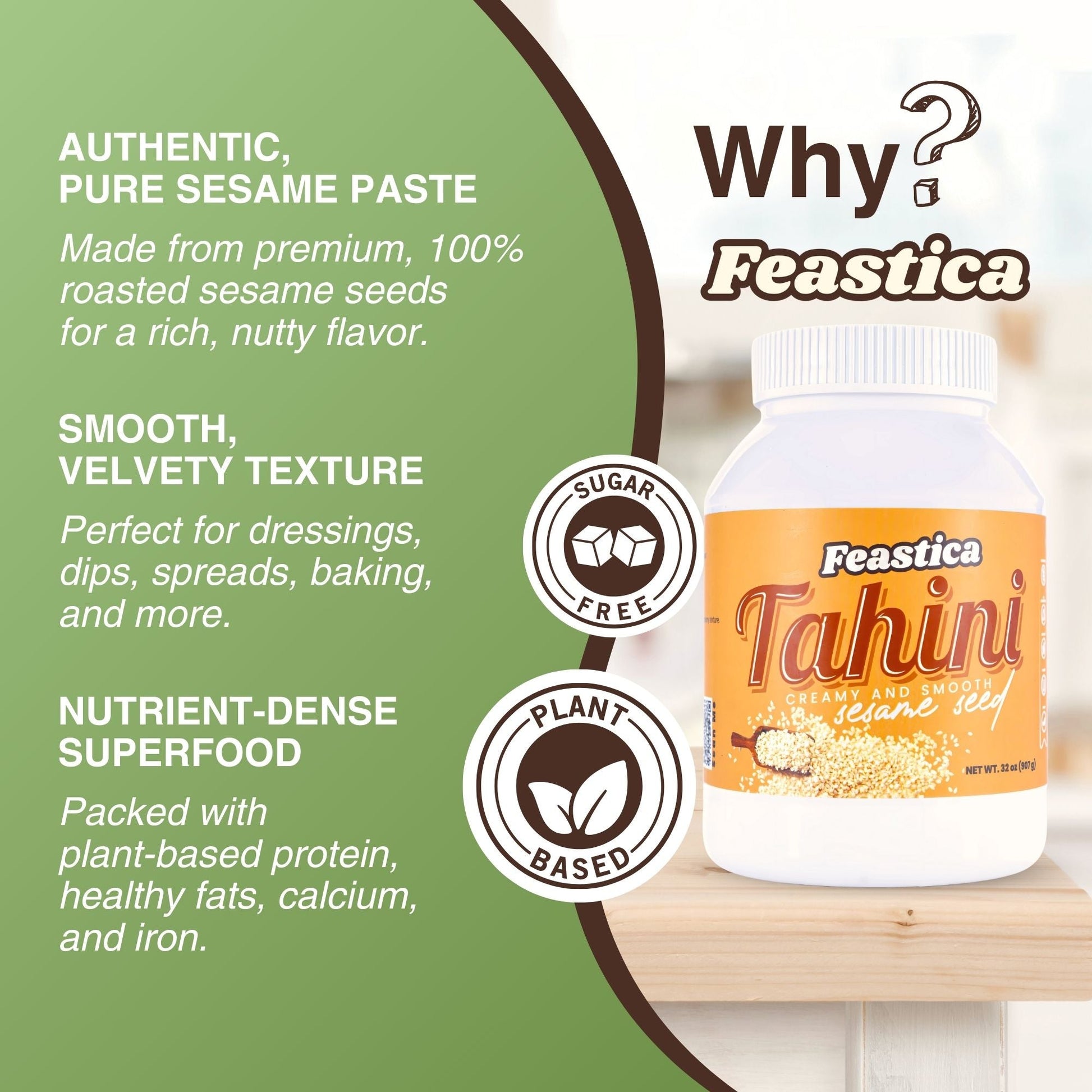- 100% Organic Sesame Seeds – Smooth, creamy, and stone-ground for rich flavor.