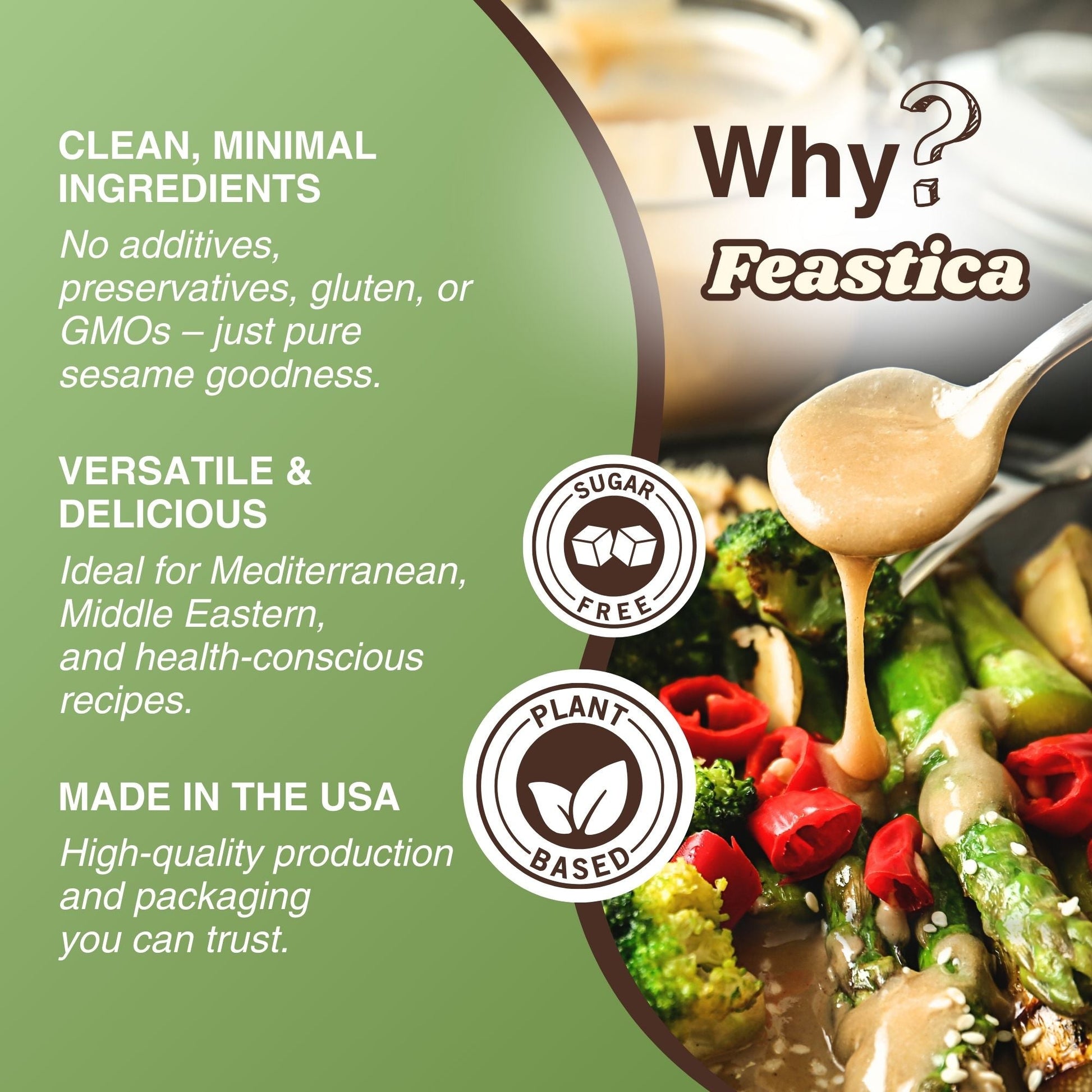 - Clean & Natural – No additives, no preservatives – just pure tahini.