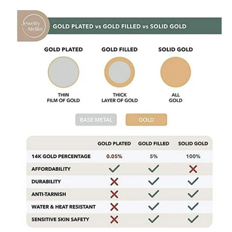 Durable Material: Gold-filled construction offers affordability, durability, strength, and resistance to heat, water, and tarnishing