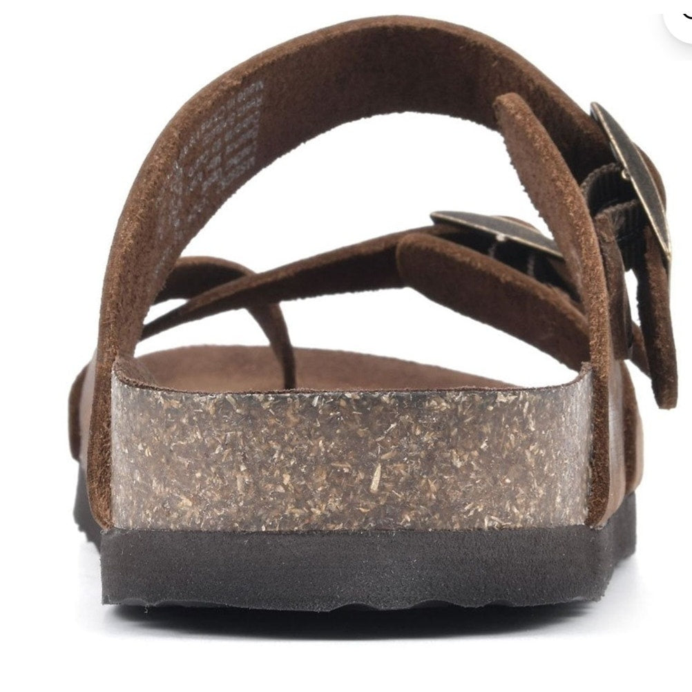 that fits around the toe for a comfortable fit and fun toe loop design. A molded, suedette-lined, cork-wrapped footbed makes every step full of comfort. The durable EVA outsole on this sandal is both shock-absorbing and non-slip. These features make this sandal