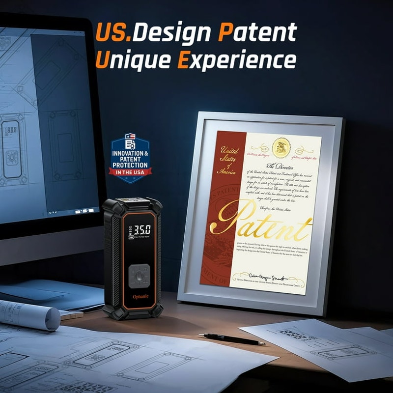 Ophanie Cordless Portable Tire Inflator - Digital Pressure Gauge, Air Compressor for Car Tires