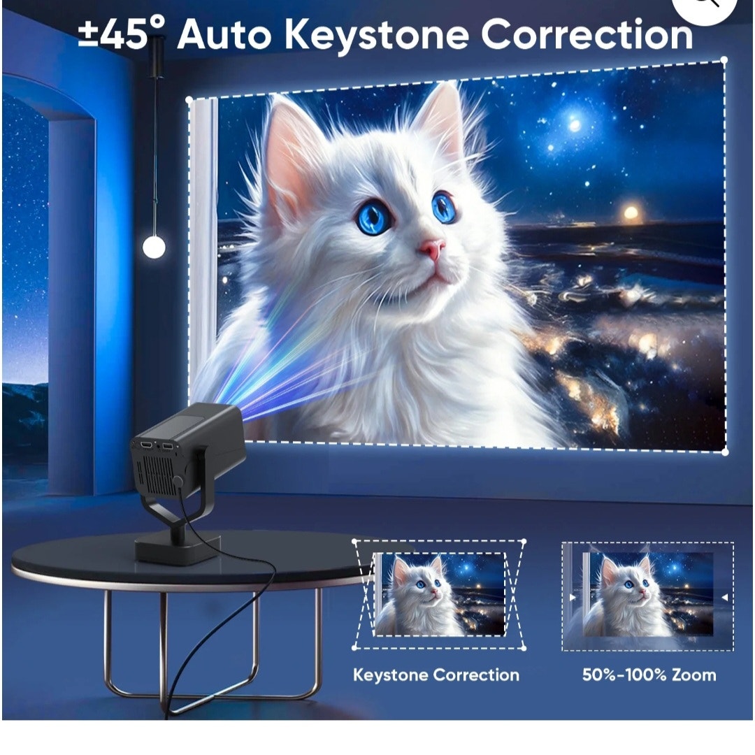 Smallest and most Portable Mini Projector. This mini portable projector weighs only 0.4 kg and can be easily put into a backpack. It measures 3.74x3.34x8.26 inches and can be easily integrated into home theaters, outdoor movie camping, business presentations, game meetings, fitness tutorials, travel entertainment, and flash events, etc., presenting the magic of a clear big screen anytime, anywhere.