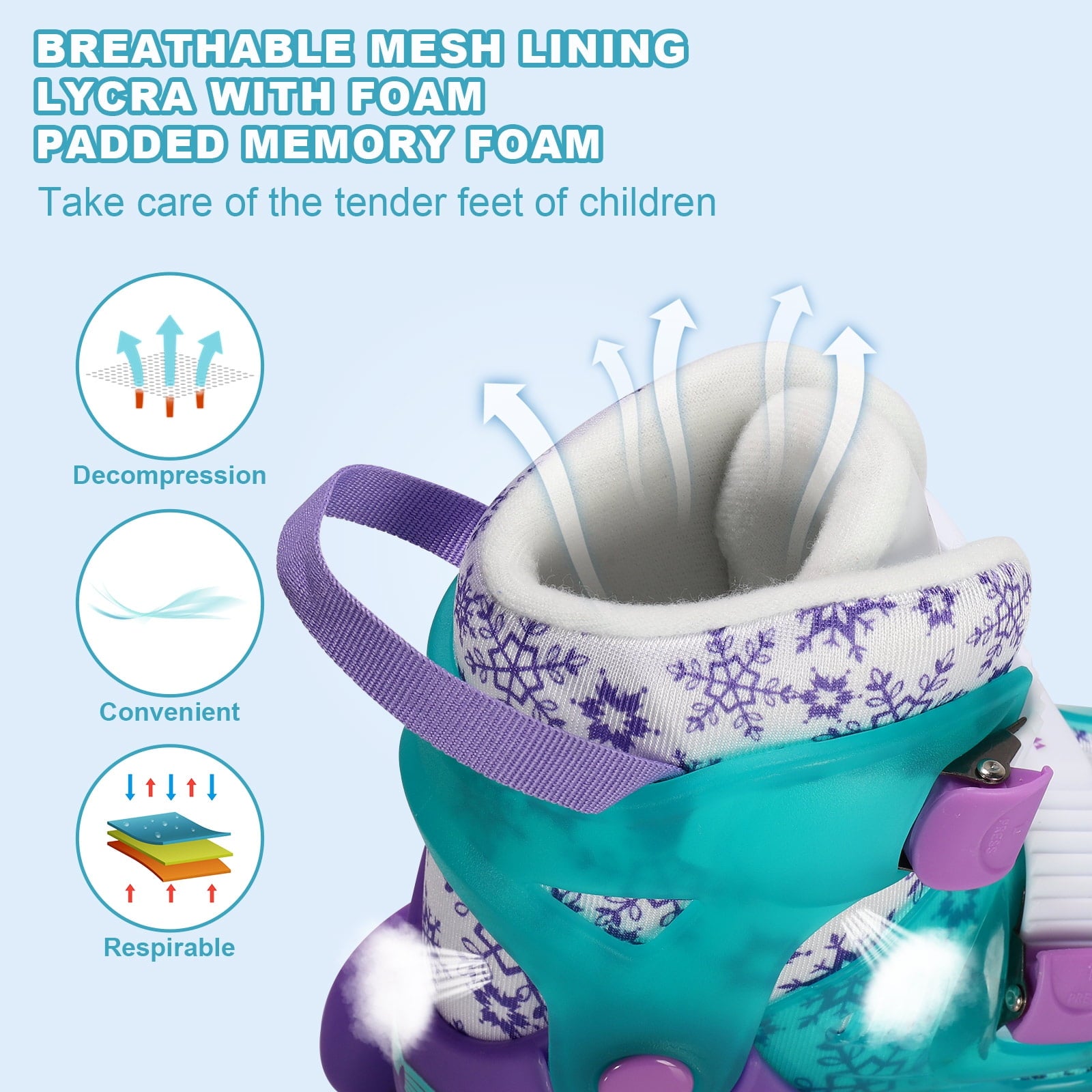Adjustable Size - These roller skates Medium fits US little kids shoe size 13-2.5, adjustable. The skates' size can be adjusted. Perfect for growing children. Kids can adjust by themselves easily via rotating a knob on the back of the skates.