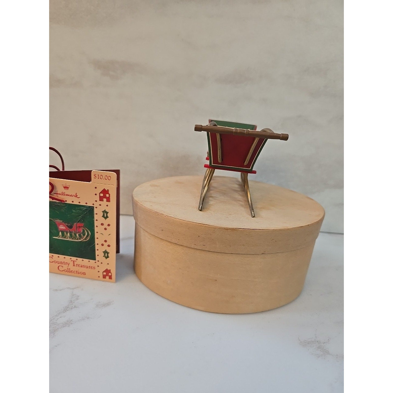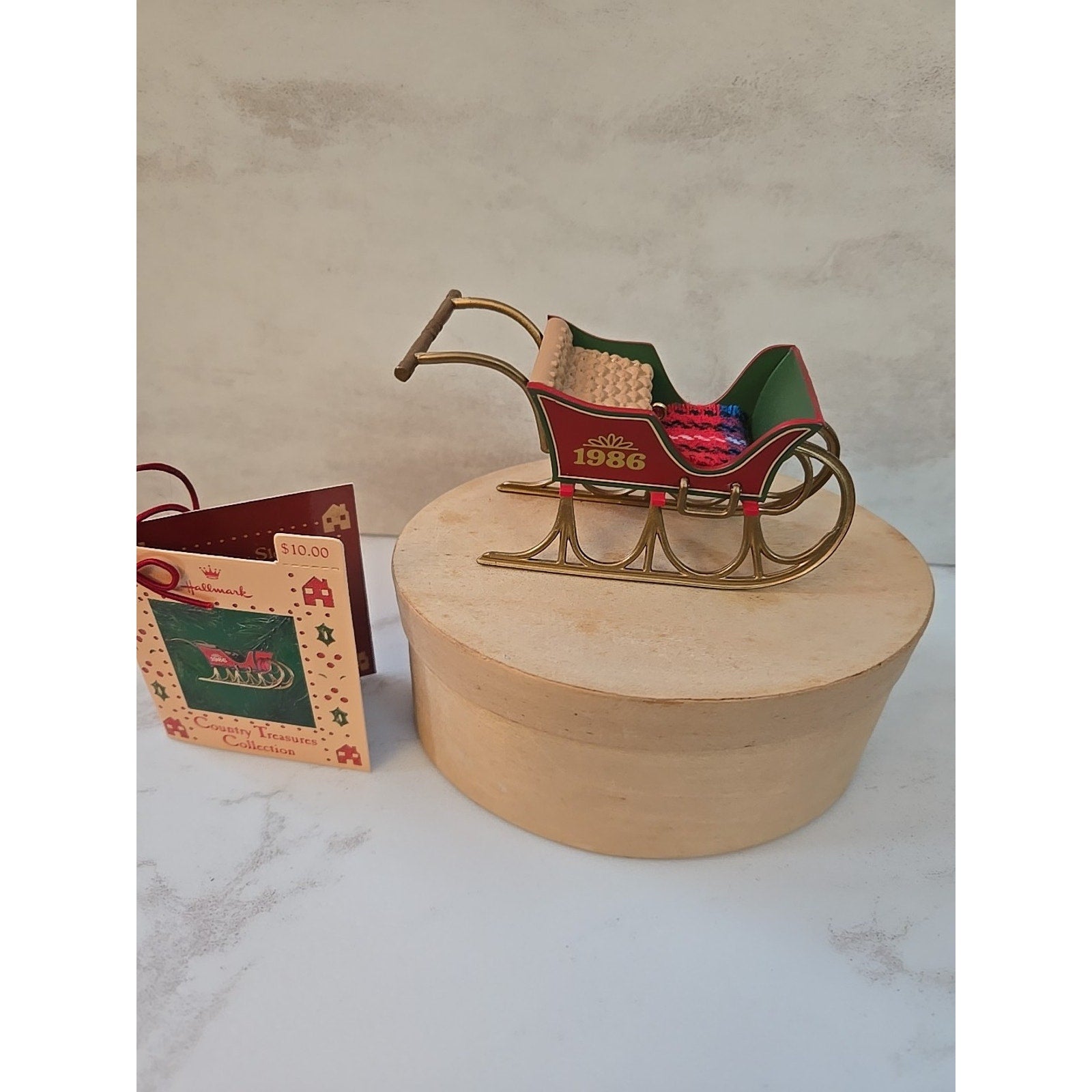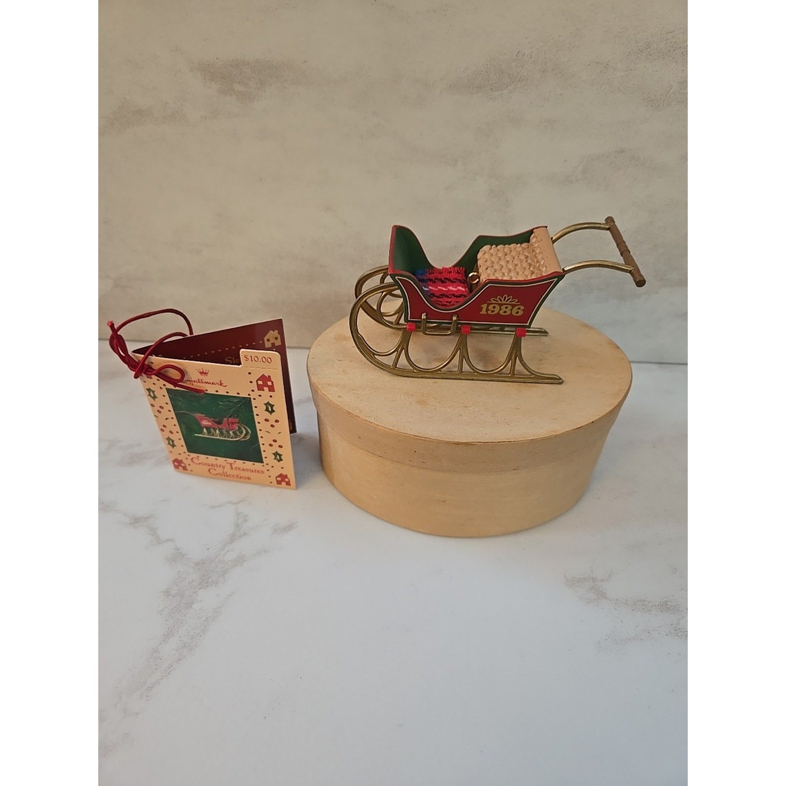 This is a 1986 Hallmark Country Sleigh collectible ornament with tag and wooden storage box. Please look at my other auctions thanks!