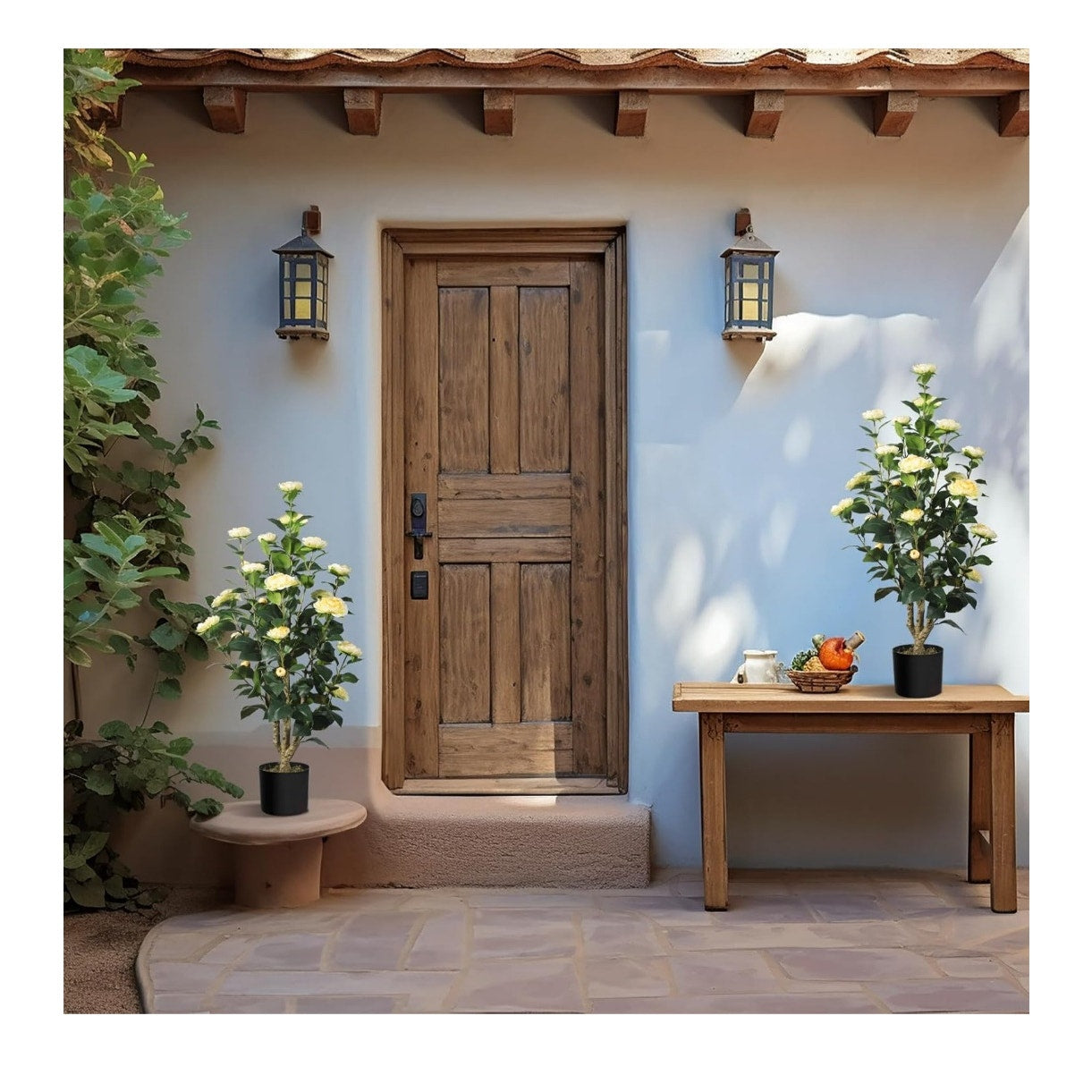 Indoor and Outdoor Use: Whether you want to enhance your living room, patio, garden, or office, this versatile artificial camellia tree can be used both indoors and outdoors.