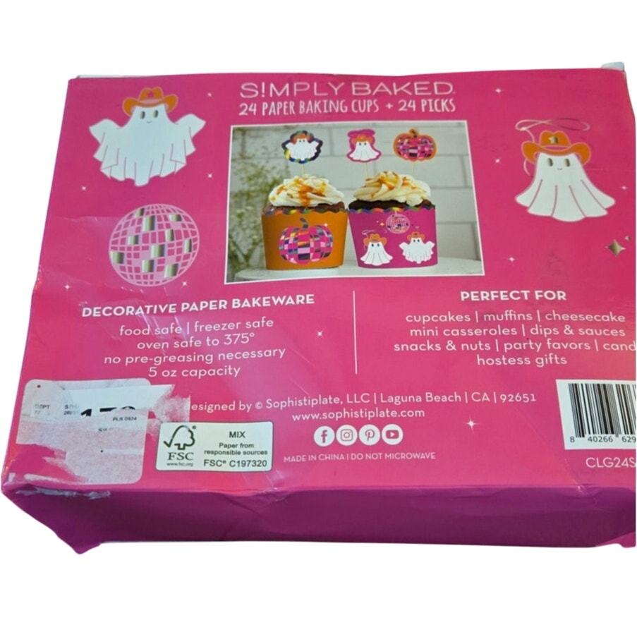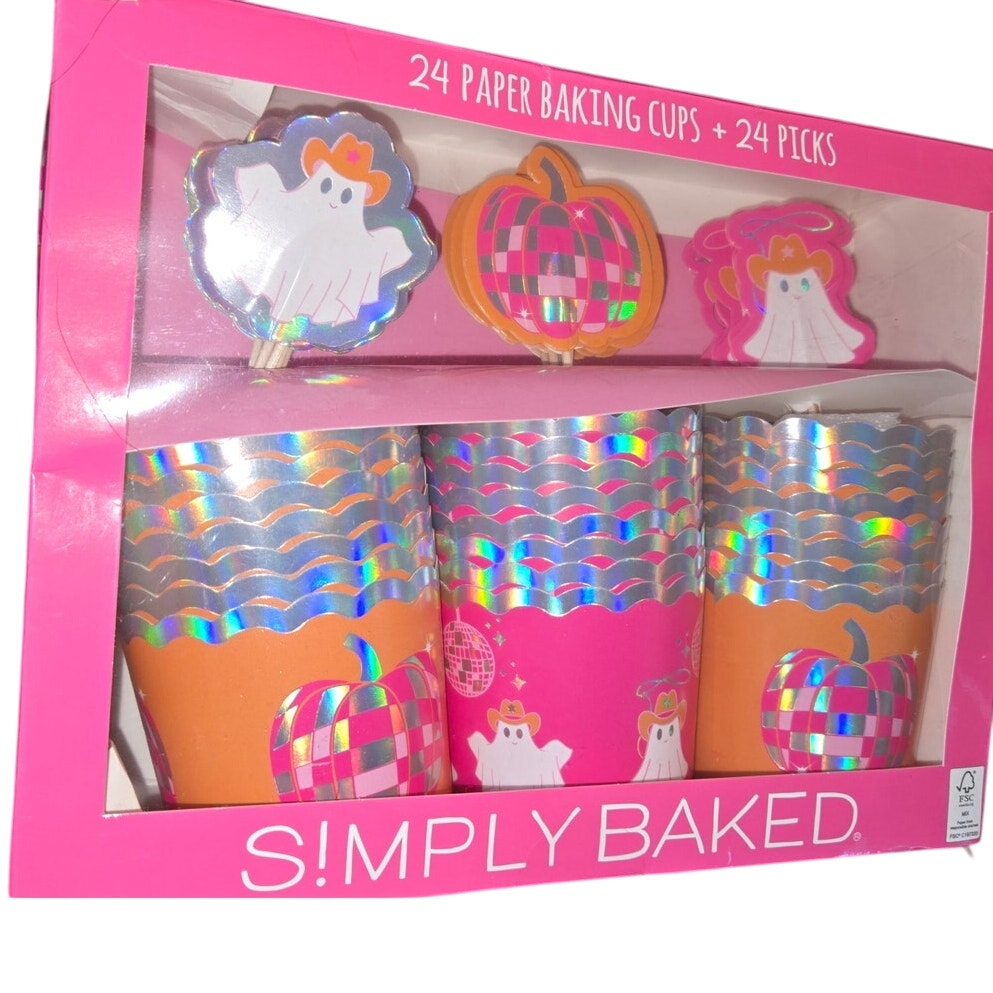 SIMPLY BAKED 48pc Pink Halloween Themed Cowboy Ghosts Cupcake Baking Cups & Picks Set