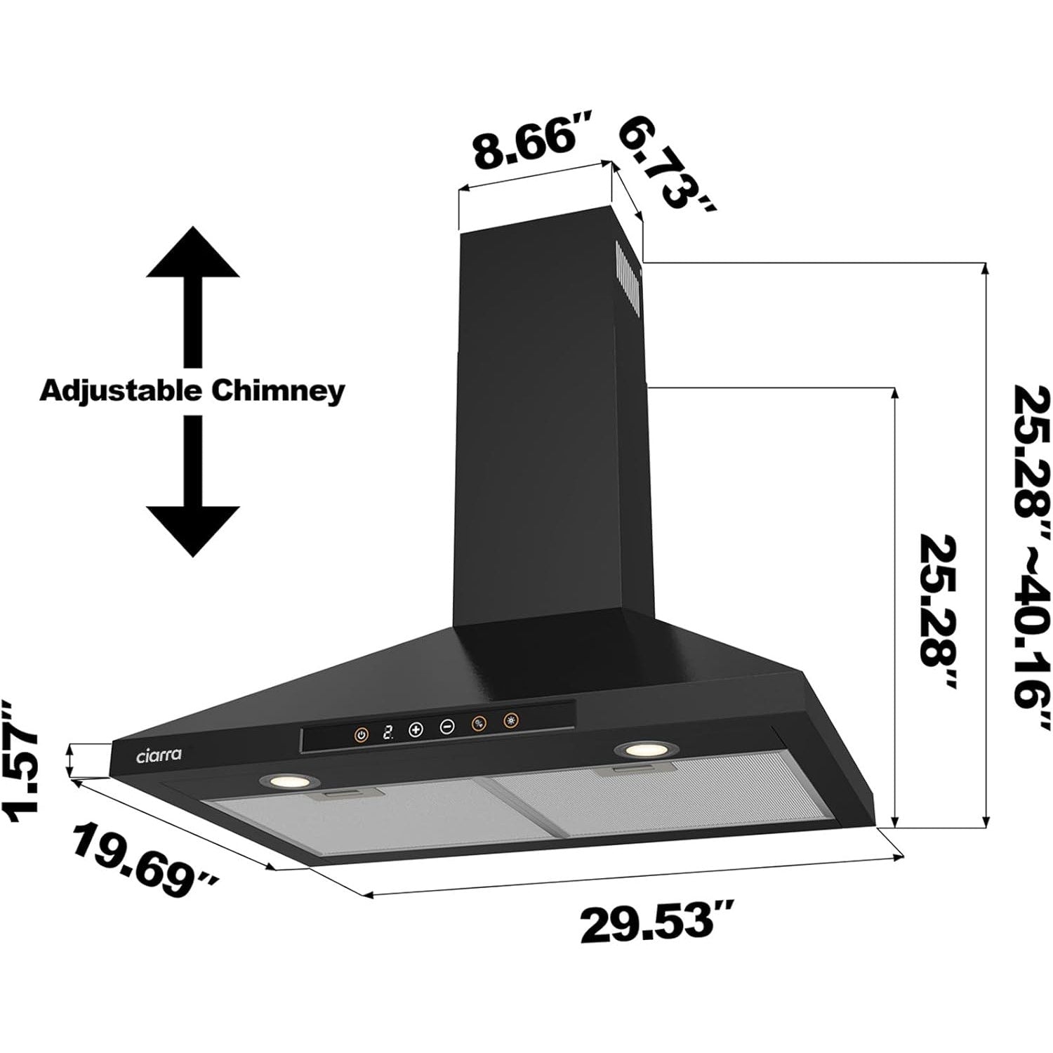 New in box. Wall Mount. CIARRA 30-Inch Black Range Hood