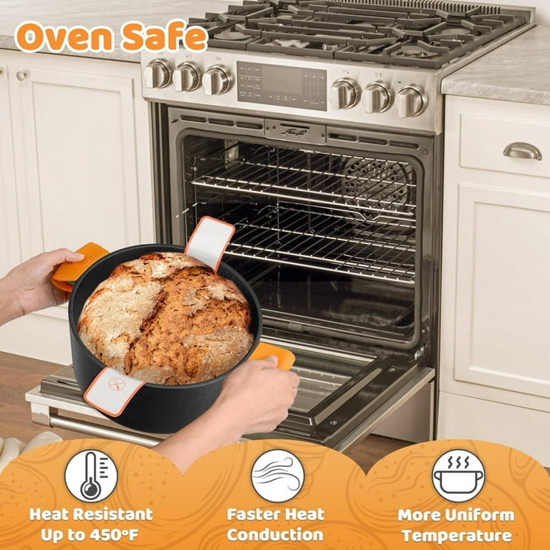 Cast Iron Dutch Oven for Bread Baking, 5 QT Pre-Seasoned Dutch Oven Pot with Skillet Lid