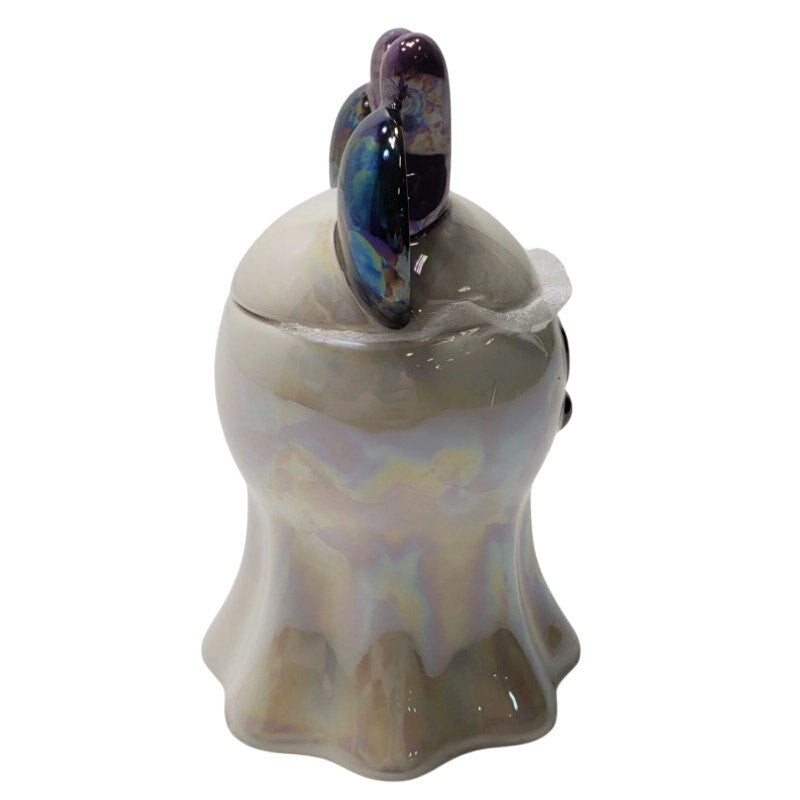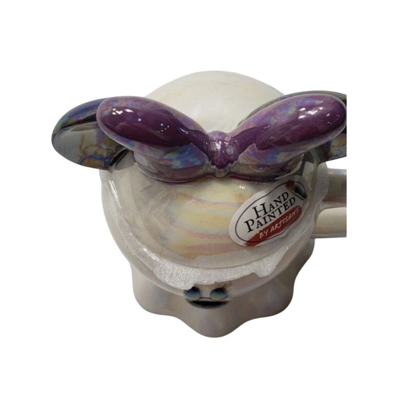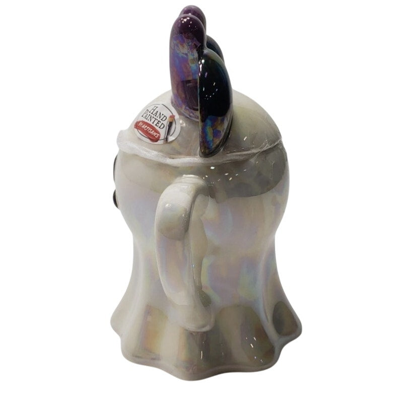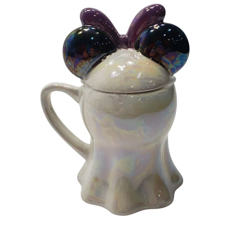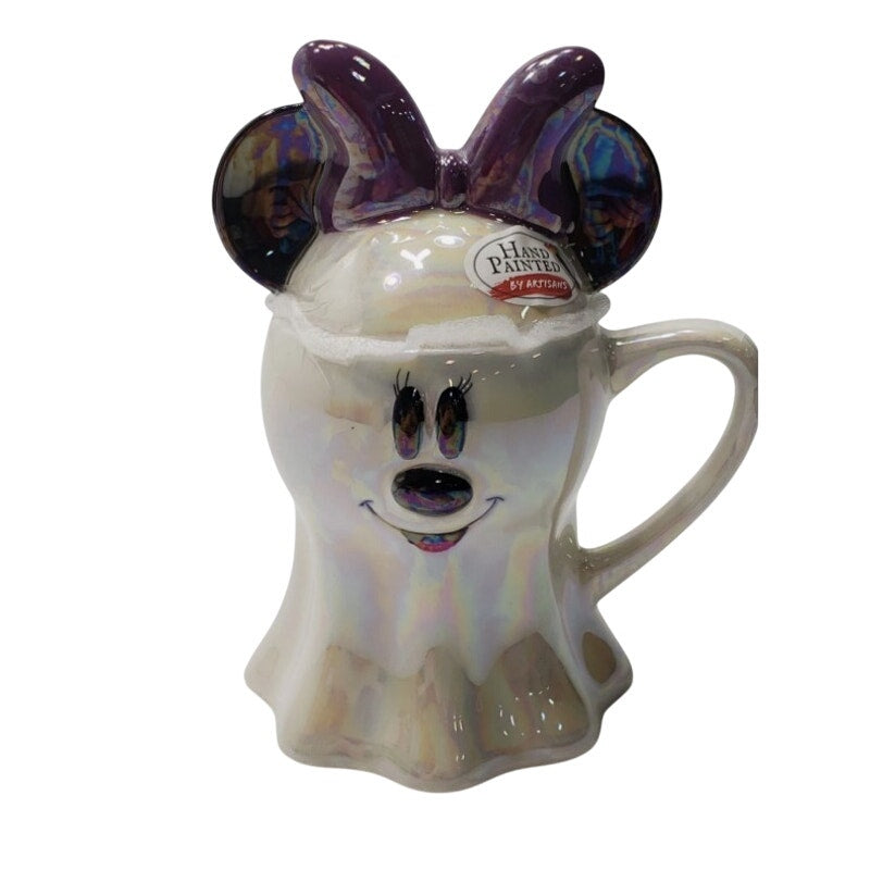 Disney Halloween Minnie Mouse Iridescent Glazed Ghost Mug & Lid Handpainted New