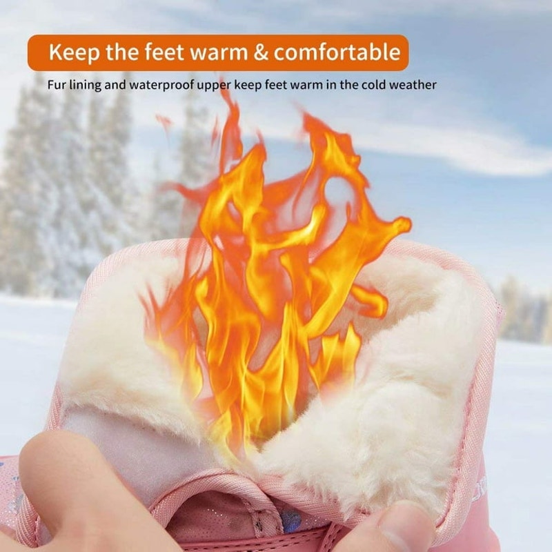 Warm Plush Inside: Seam-sealed, high-density plush lining cuddles little toes gently, soft plush faux fur lining keeps feet toasty warm and comfortable all day long in winter.