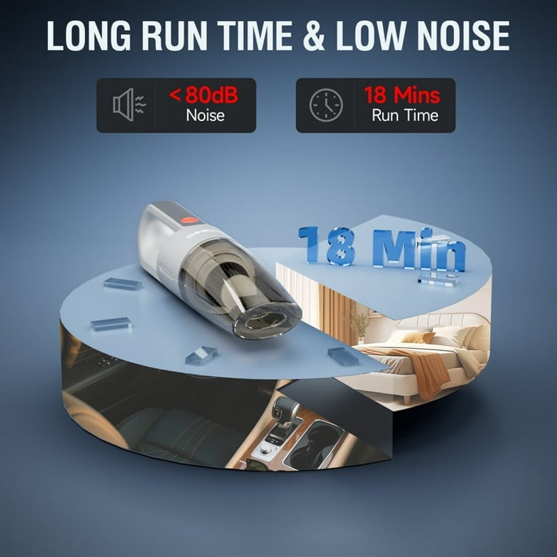 Ultra-Light Design: Weighing only 0.88lb, this cordless vacuum is comparable to a bottle of water, ensuring effortless cleaning without cord tangling.