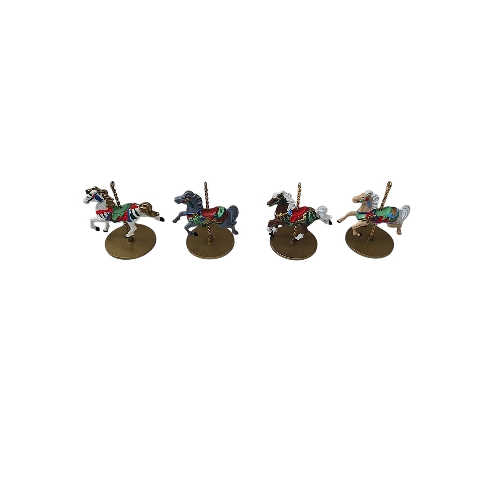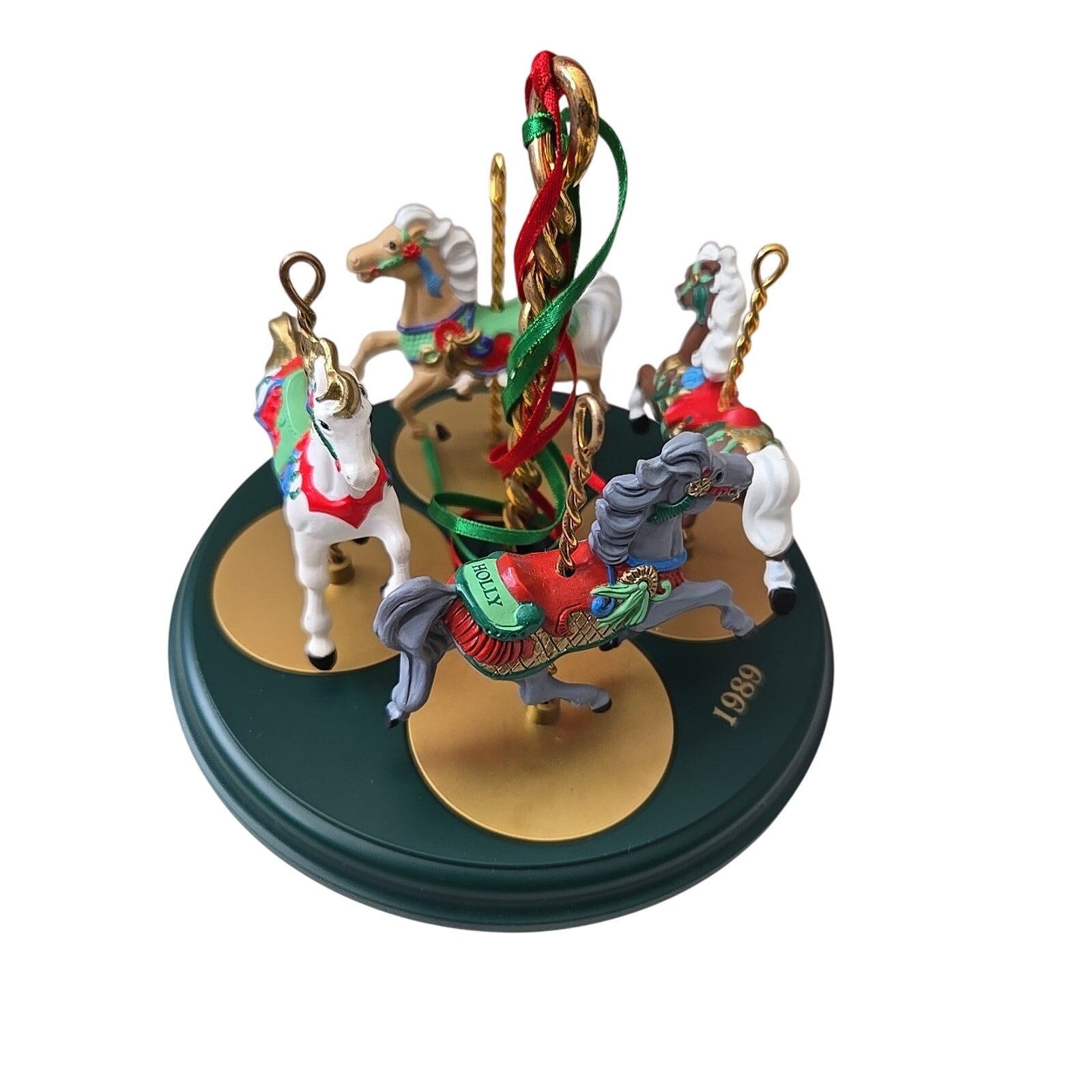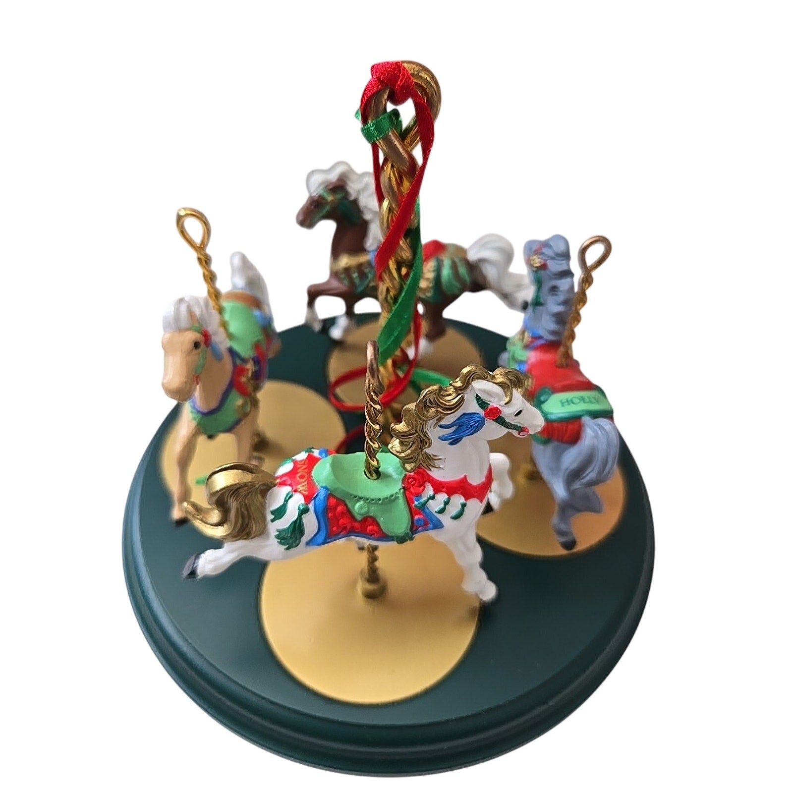 Hallmark Carousel & Horses Christmas Ornaments Set Of 4 Horses & Stand 1989