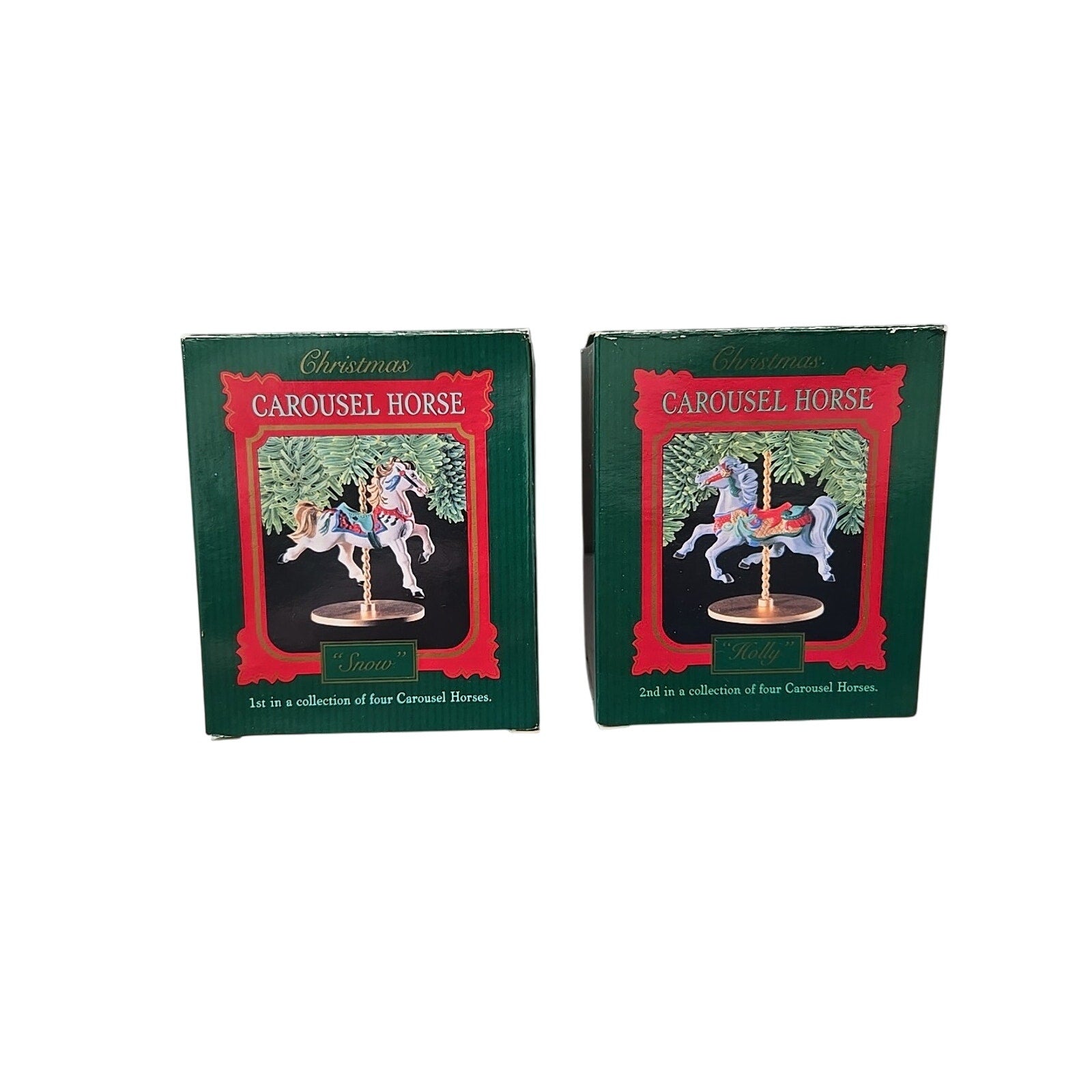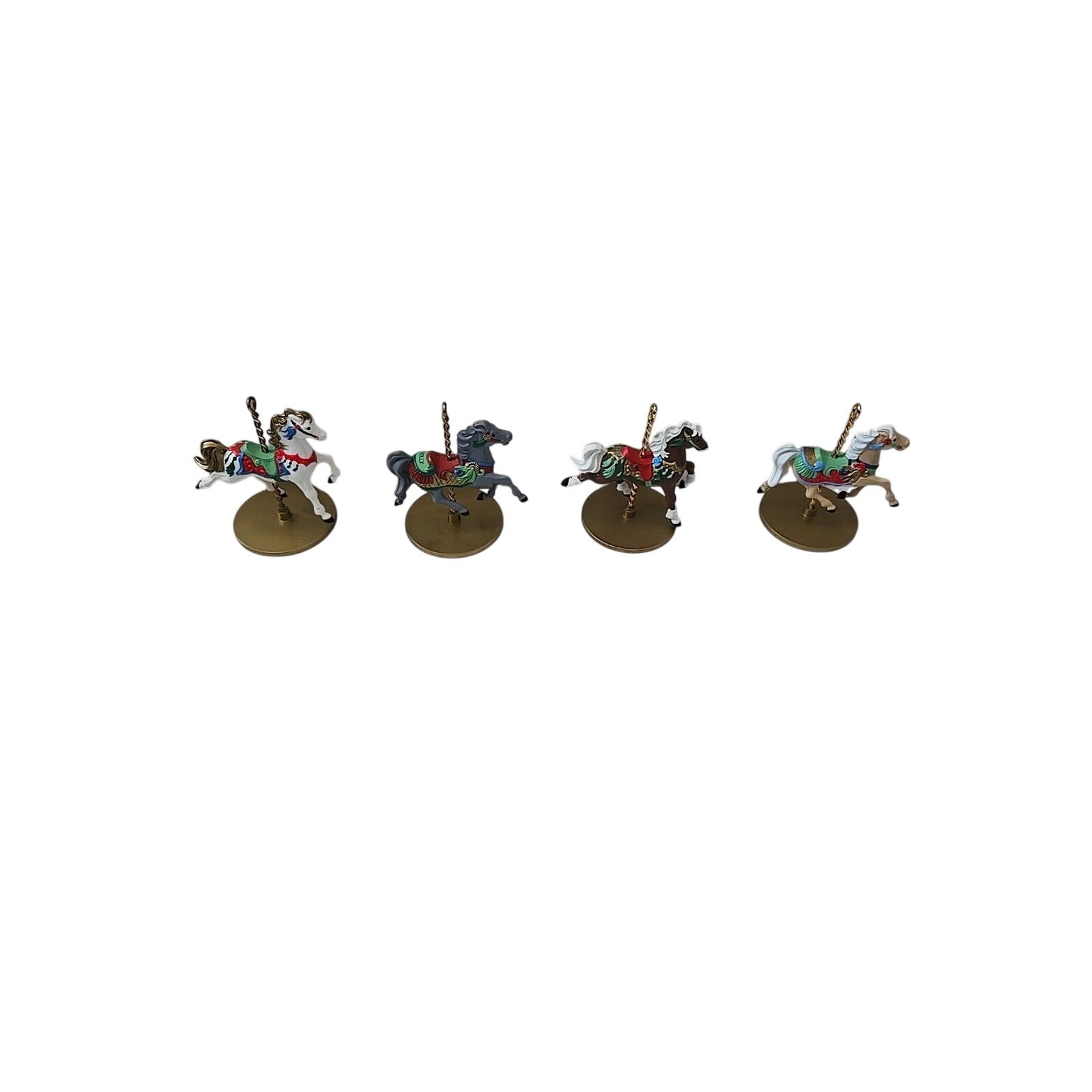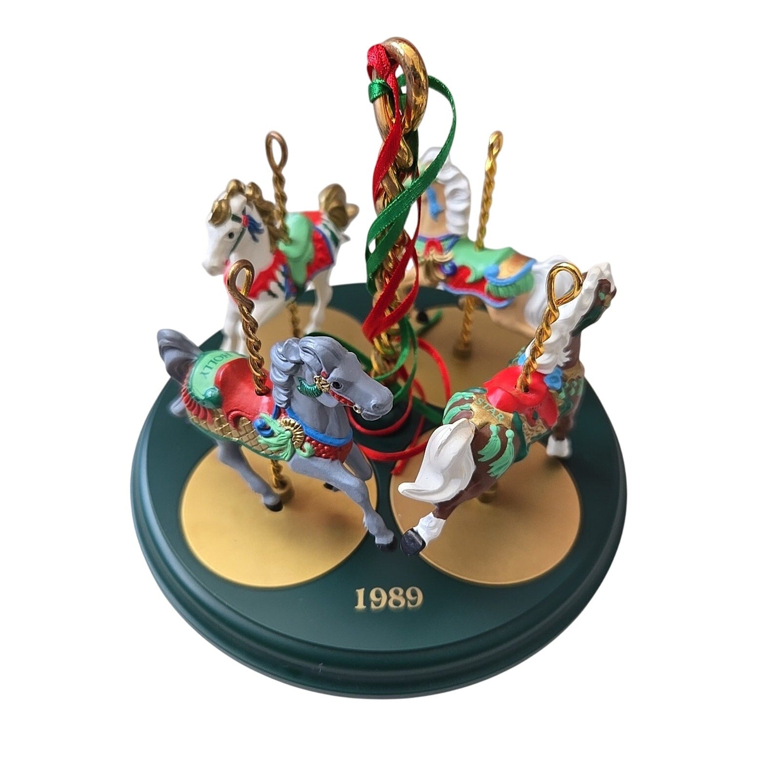 Hallmark Carousel & Horses Christmas Ornaments Set Of 4 Horses & Stand 1989