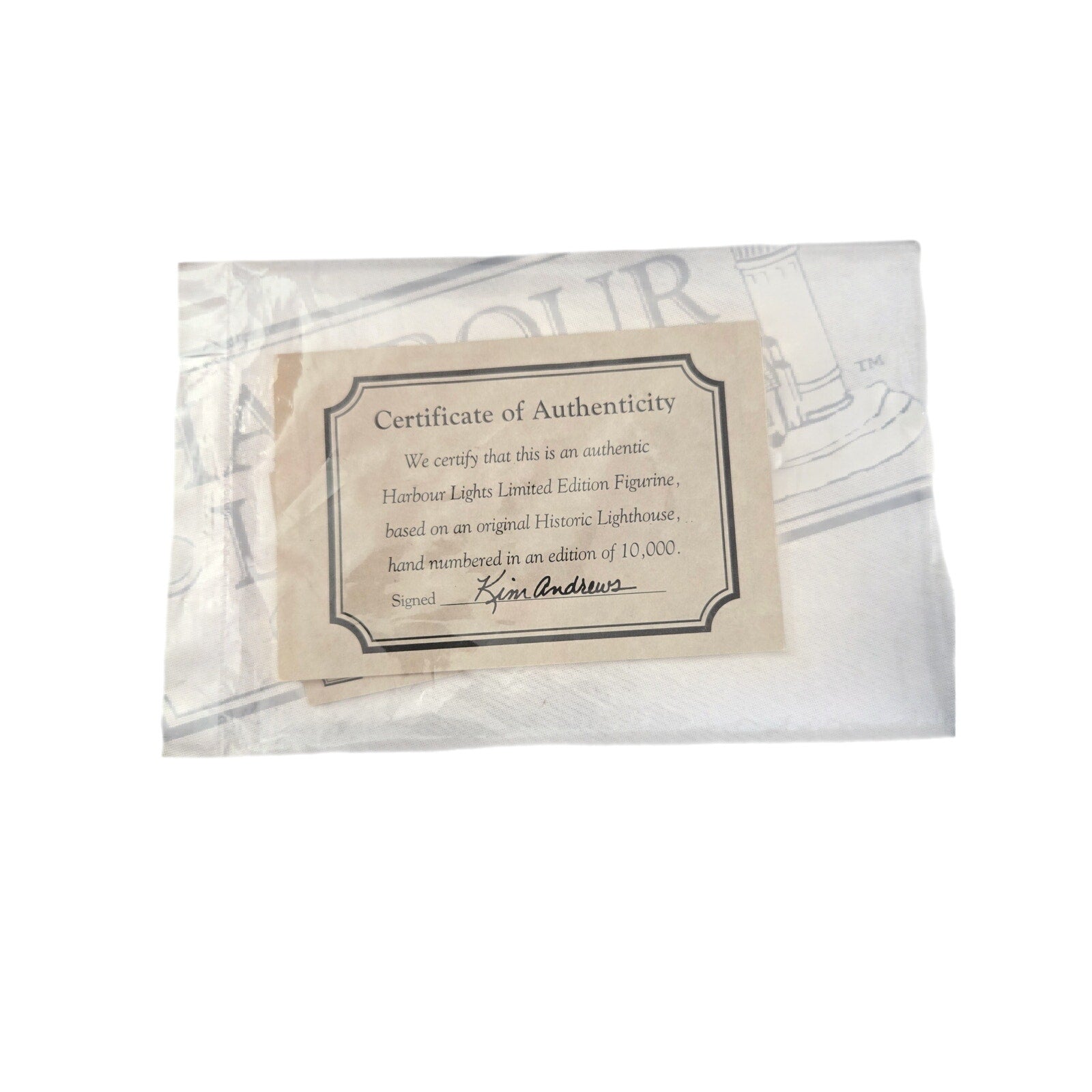 Numbered open edition cast resin Lighthouse from Harbour Lights. Each lighthouse comes with a certificate of authenticity and a brief history of the lighthouse.