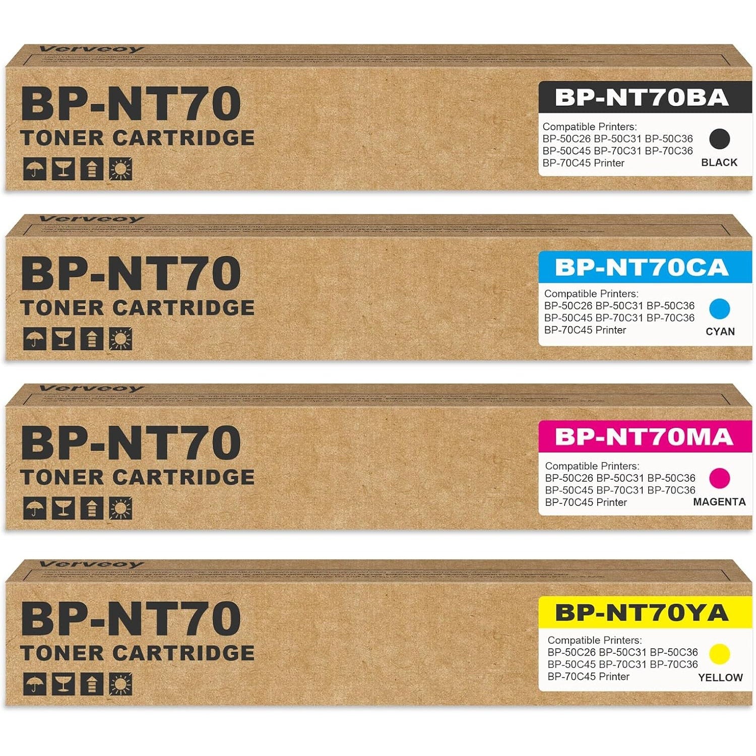 BP-NT70 BP-NT70BA BP-NT70CA BP-NT70MA BP-NT70YA High Yield 4-Pack Toner Cartridge Replacement for Sharp BP-NT70 for BP-50C26 BP-50C31 BP-50C36 BP-50C45 BP-70C31 BP-70C36 BP-70C45 Printer (4-Pack)