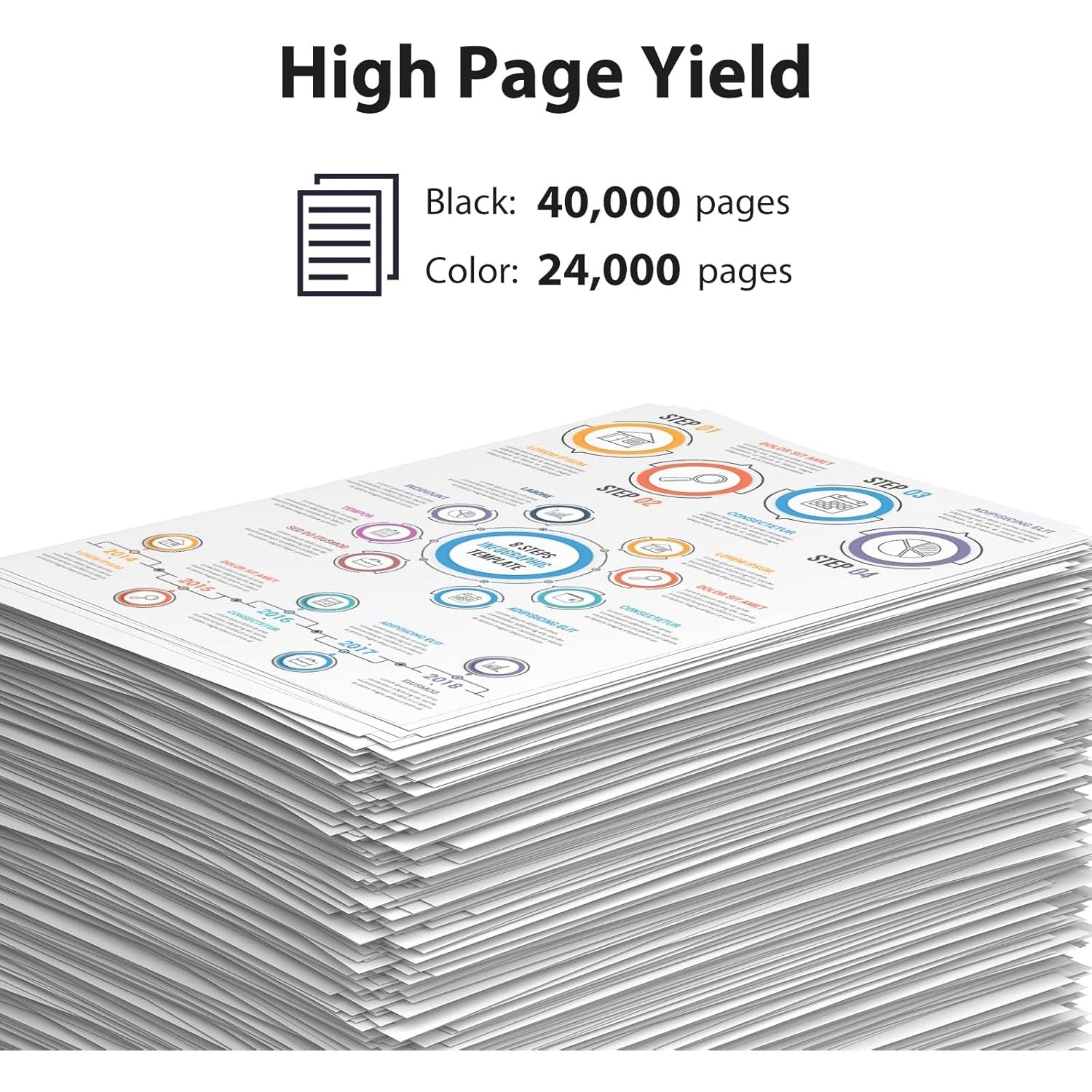 High Yield: 40,000 pages black cartridge & 24,000 pages per color cartridges