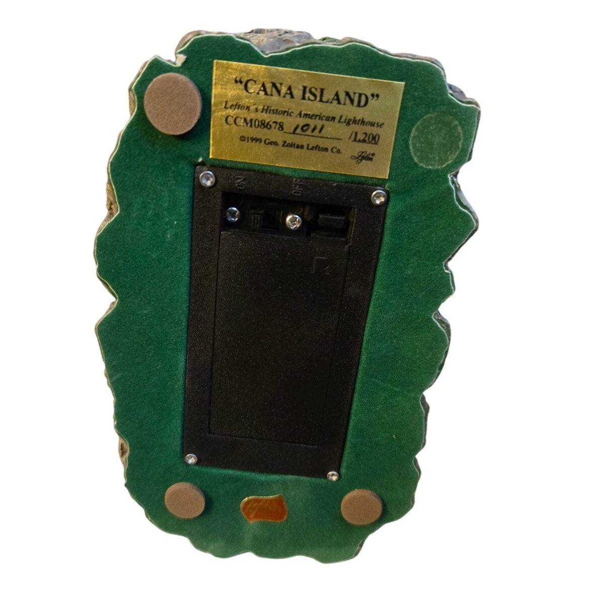 This is a beautiful Lefton's Collectable Cana Island Lighthouse, model number CCM08678. It's a great piece for collectors or anyone who loves nautical decor. The lighthouse is crafted with attention to detail. It is a charming addition to any home or office.