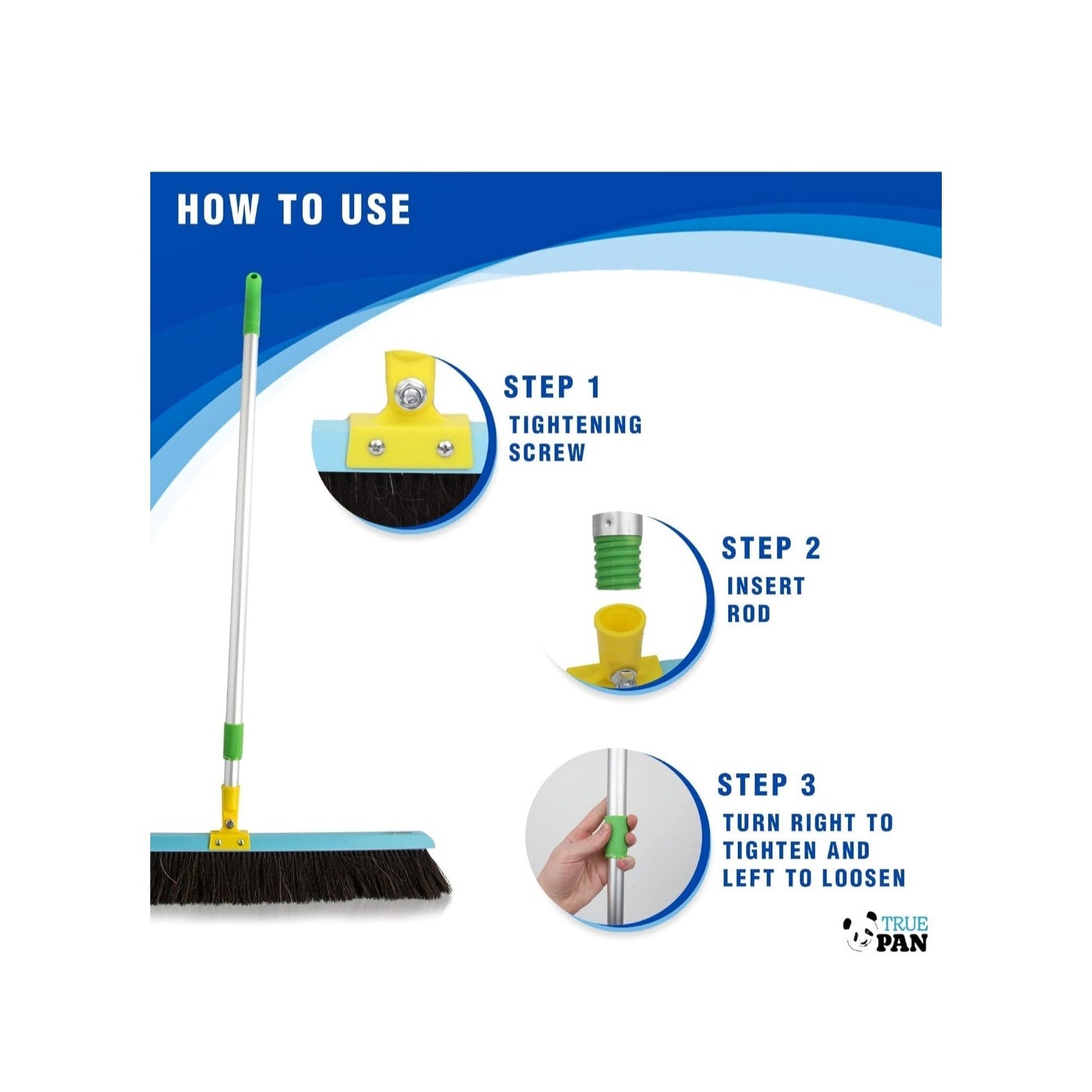 SWEEP LIGHTLY: Sweep with ease, focus "light" pressure on the bristles. This is a LIGHT broom, not a Push broom. You don't need to work hard to pick up dust. Natural Bristles will widen & form after a while.