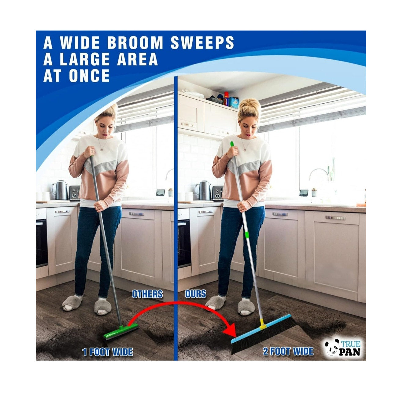 TWO FEET WIDE BROOMHEAD: Sweep up in one motion twice the area that other brooms allow. Cleaning will go much faster! Satisfaction Guaranteed. Designed in the USA. Patent Pending.