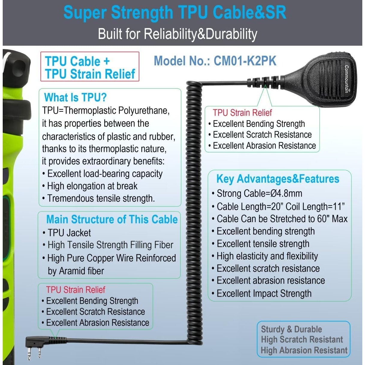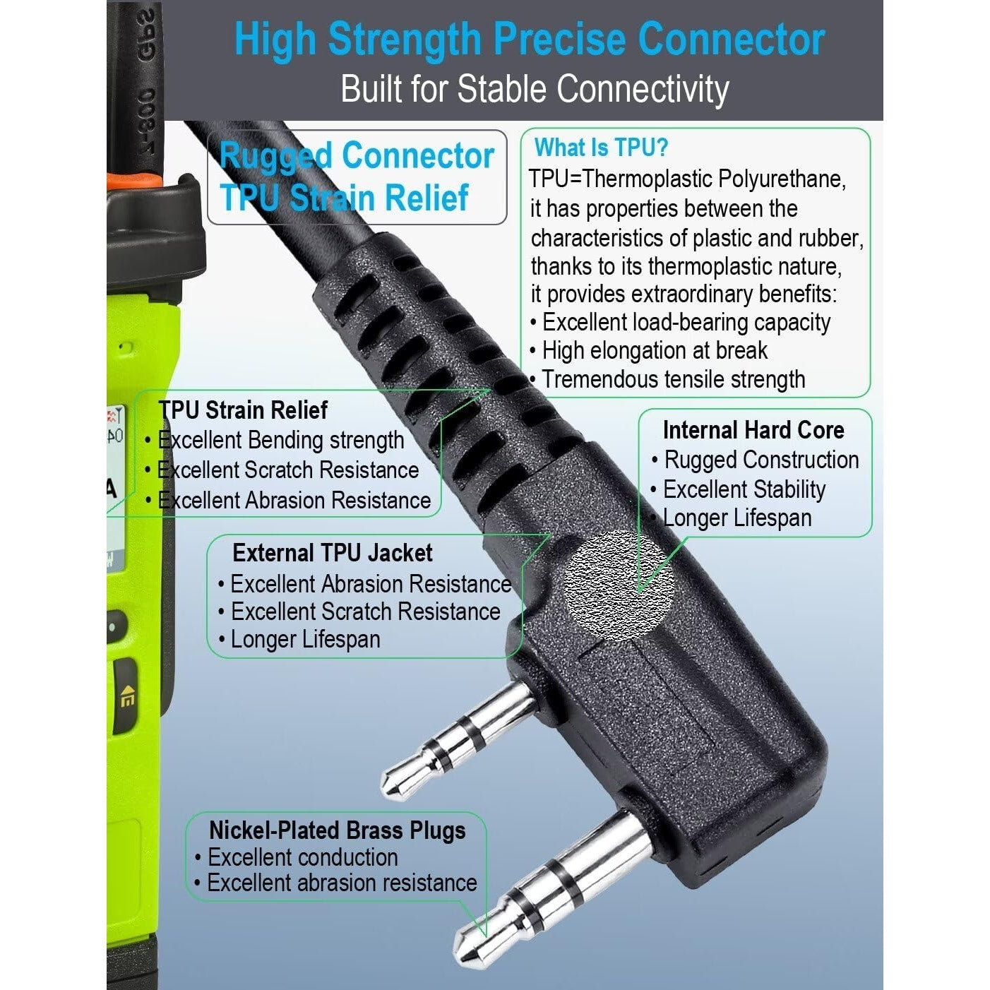 *High Strength Precise Connector: With TPU (Thermoplastic polyurethane) rubber jacket, internal hard core and Nickel-plated brass plugs, assembled by precise soldering technology and molding technology, the connector of this speaker mic is built for stable connectivity and excellent operating life.