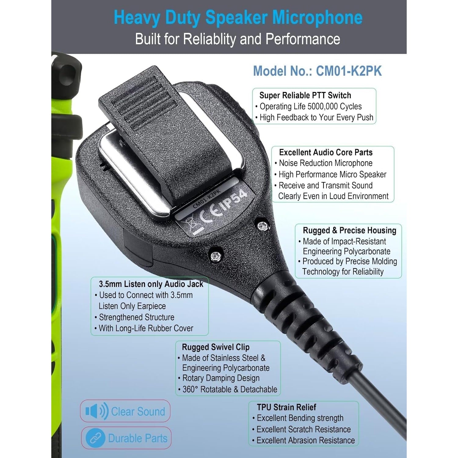 *Clear sound transmission: With a high-quality micro speaker, noise cancellation microphone, high-purity copper wire, and anti-interference circuit design, this speaker microphone ensures sound is received and transmitted clearly even in a loud environment.