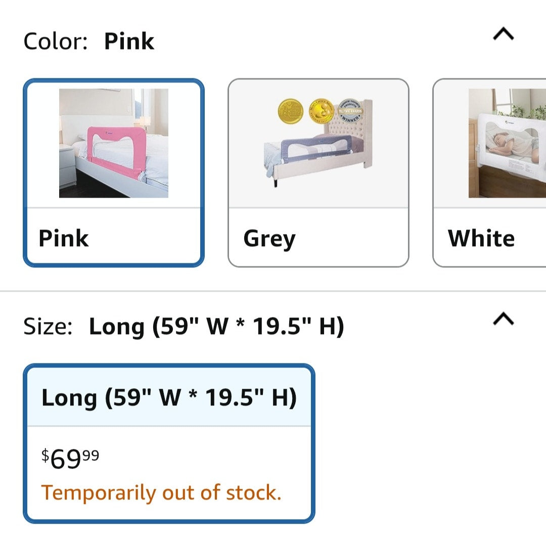 Totcraft baby bed rail extra long in Pink. This is the larger version. New in box. The dimensions are in pictures. Includes ONE bed rail.