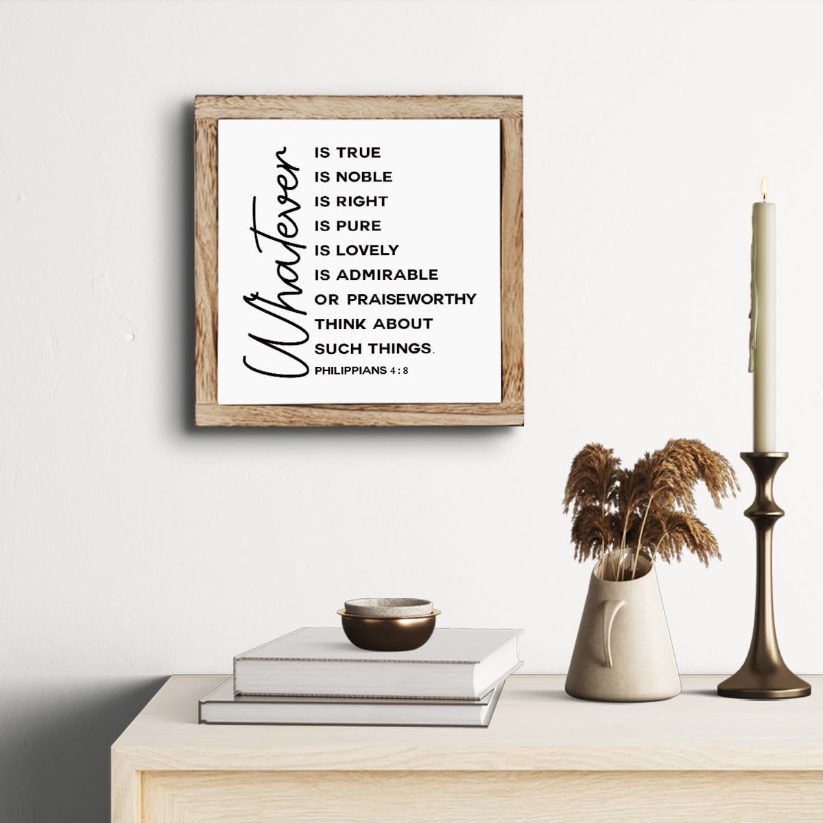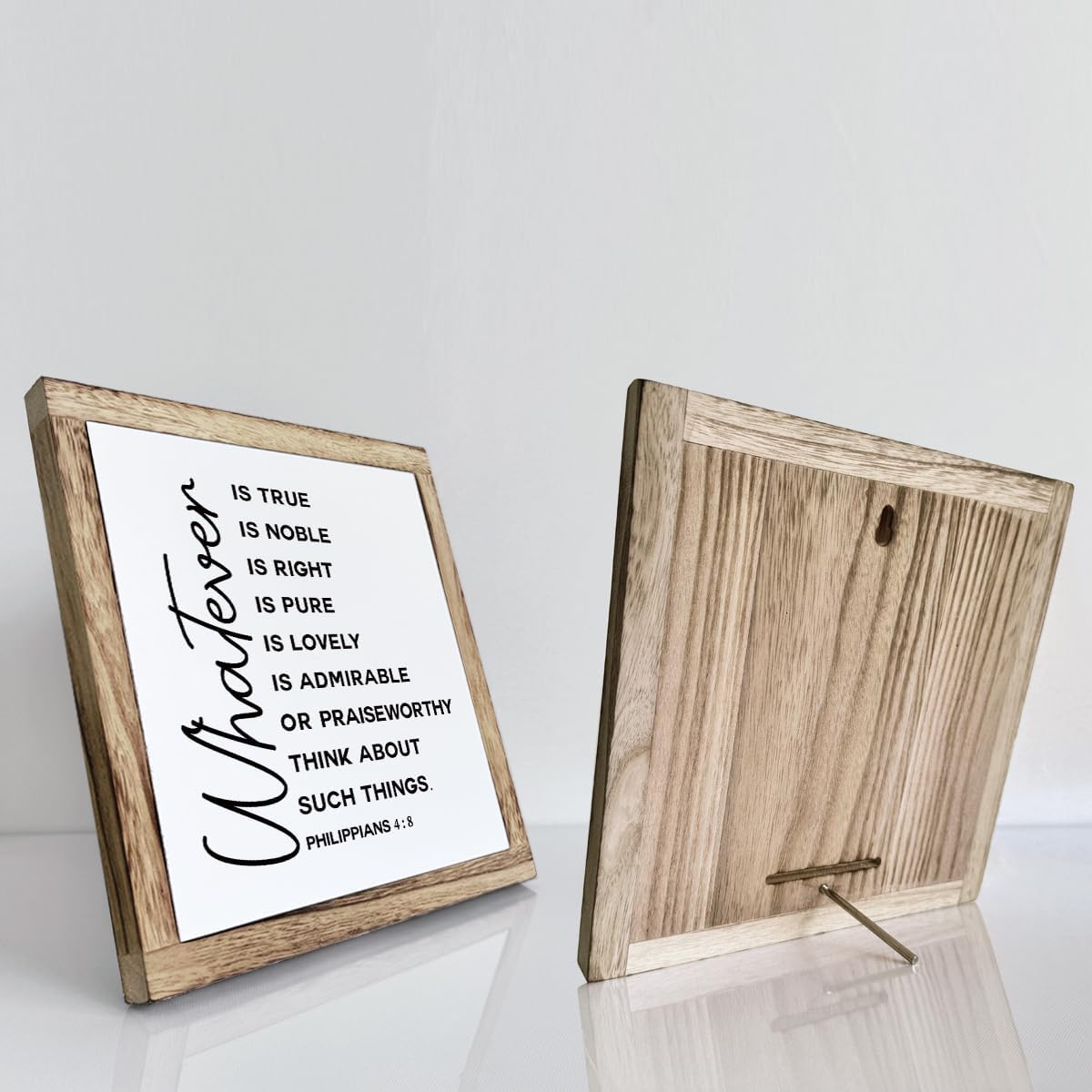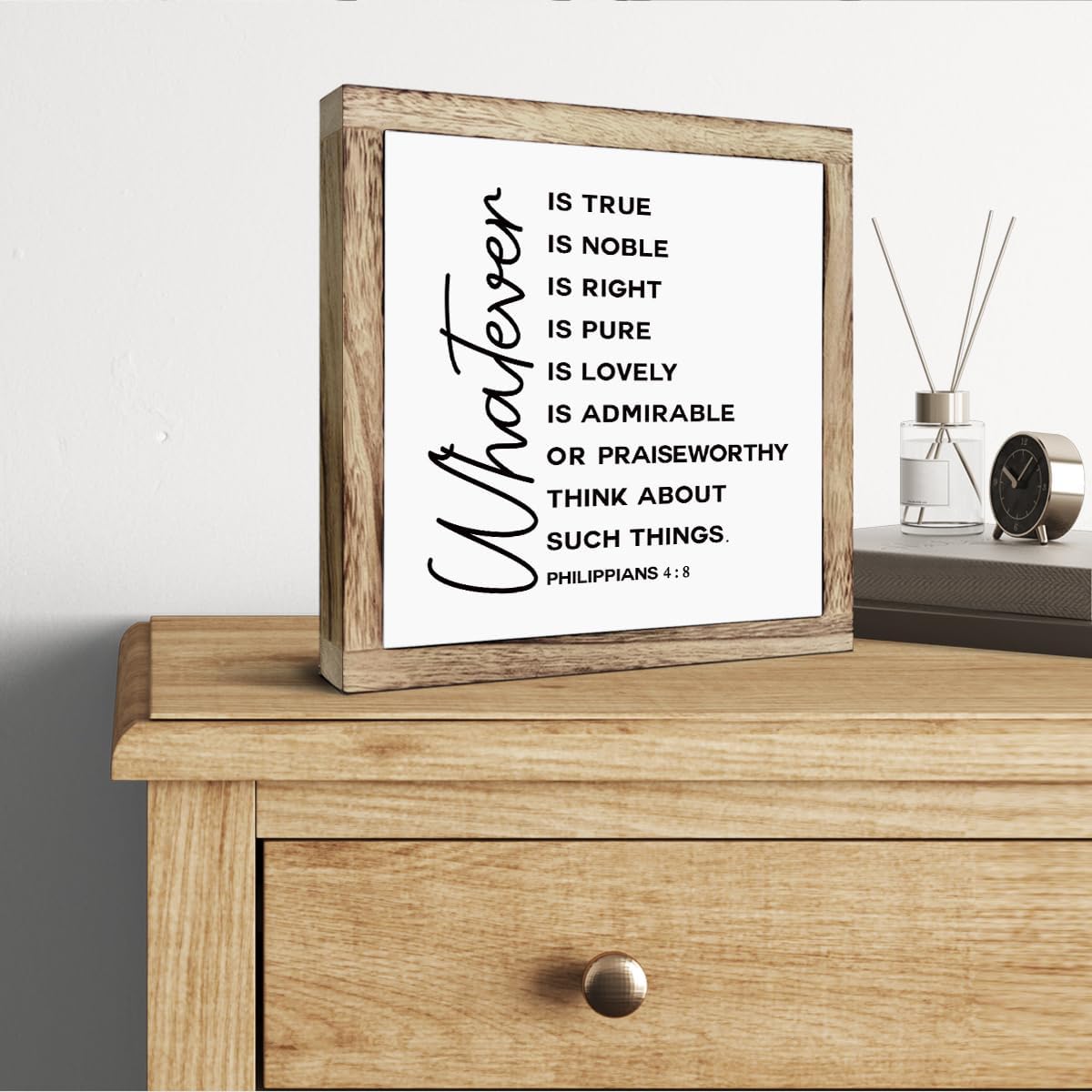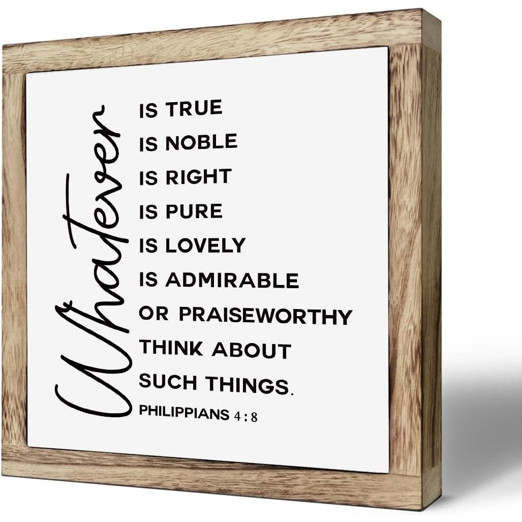 Philippians 4:8 Wooden Plaque for Wall or Table Inspirational Bible Verse Art