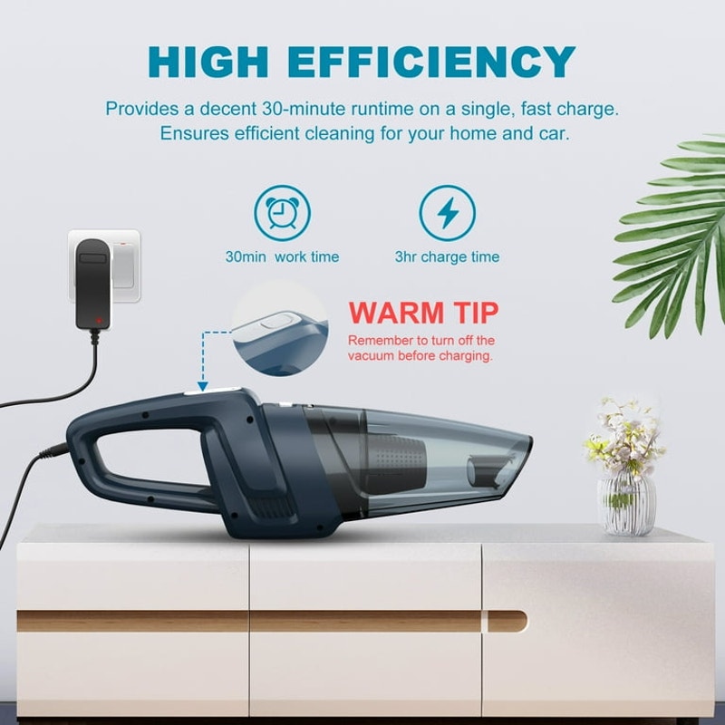 The Kosiy Cordless Car Vacuum Cleaner Portable Handheld Vacuum offers strong suction and a lightweight design for easy cleaning of spills, debris, pet hair, and more. With 8KPA suction power, it handles both wet and dry cleaning efficiently. Its cordless and portable nature, along with versatile attachments, makes it perfect for reaching difficult corners and surfaces. The double-layer filter system ensures optimal performance by filtering fine particles and preventing clogging. A large see-through dustbin reduces the need for frequent emptying, and a 30-minute runtime allows for thorough cleaning. Compact and easy to store, this vacuum cleaner is ideal for maintaining a tidy car or home.