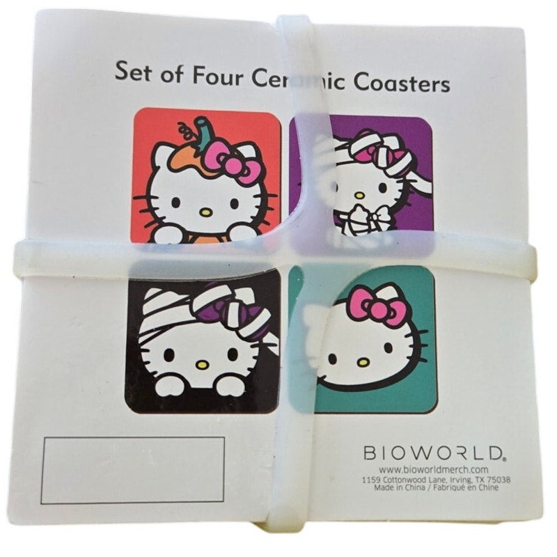Sanrio Hello Kitty Ceramic Halloween Coasters Set of 4 Mummy Pumpkin