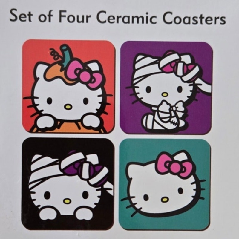 Sanrio Hello Kitty Ceramic Halloween Coasters Set of 4 Mummy Pumpkin Cute!